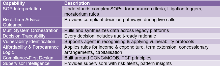 This level of depth enables human-grade judgement, consistent regulatory alignment, rapid handling of exceptions, empathetic customer conversations and reduced operational errors.