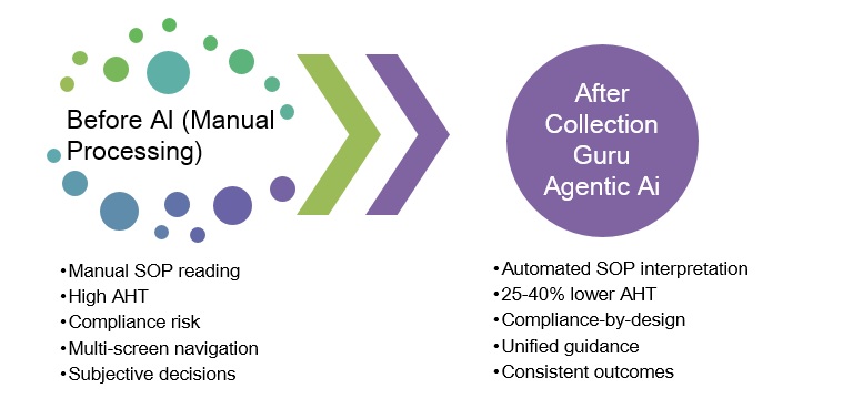 2. SOP Interpretation & Update Automation – When SOPs change, Collection Guru updates its internal reasoning instantly — eliminating SME dependency.